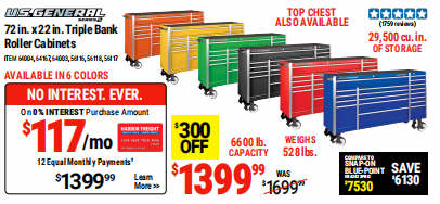 72 in. x 22 in. Triple Bank Roller Cabinet, Blue