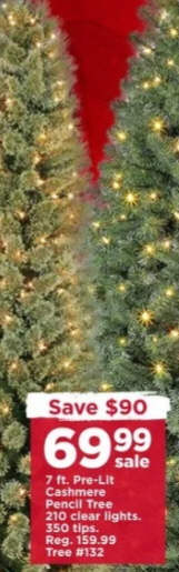 7ft. Pre-Lit Artificial Cashmere Pencil Christmas Tree, Clear Lights