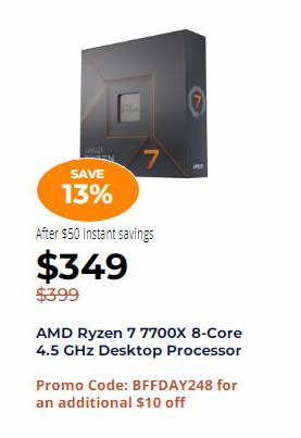 AMD Ryzen 7 7700X 8-Core 4.5 GHz Desktop Processor $349 via Promo Code: BFFDAY248