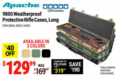 APACHE 9800 Weatherproof Protective Rifle Case, Long, Tan