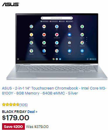 ASUS 2-in-1 Intel Core M3-8100Y 14" Touchscreen Chromebook