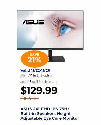 ASUS 24" FHD IPS 75Hz Built-in Speakers Height Adjustable Eye Care Monitor