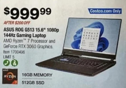 ASUS G513 15.6" 1080p 144Hz Gaming Laptop: AMD Ryzen 7 Processor RTX 3060 Graphics 16GB Memory 512GB