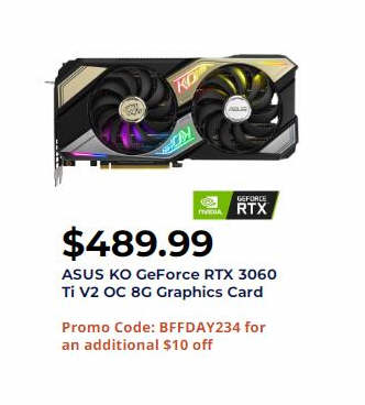 ASUS KO GeForce RTX 3060 Ti V2 OC 8G Graphics Card $489.99 via Promo Code: BFFDAY234