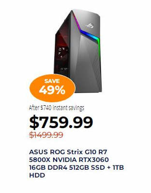 ASUS ROG Strix G10 R7 5800X NVIDIA RTX3060 16GB DDR4 512GB SSD + 1TB HDD