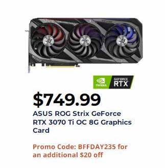 ASUS ROG Strix GeForce RTX 3070 Ti OC 8G Graphics Card $749.99 via Promo Code: BFFDAY235
