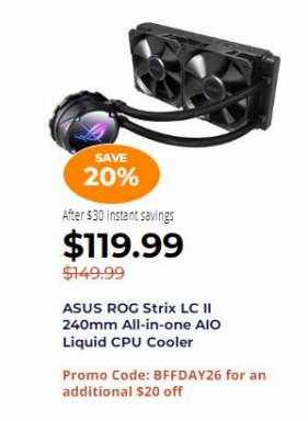 ASUS ROG Strix LC II 240mm All-in-one AIO Liquid CPU Cooler $119.99 via coupon BFFDAY26