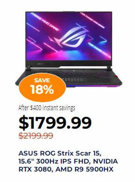 ASUS ROG Strix Scar 15, 15.6" 300Hz IPS FHD, NVIDIA RTX 3080, AMD R9 5900HX