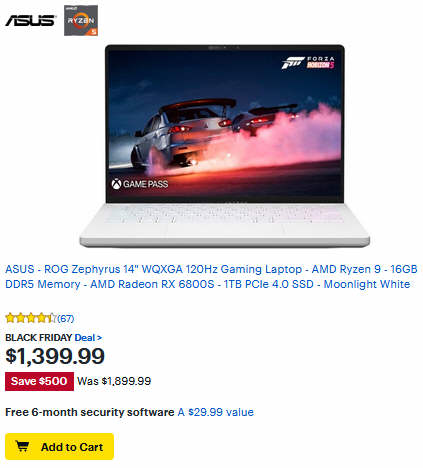 ASUS - ROG Zephyrus 14" WQXGA 120Hz Gaming Laptop - AMD Ryzen 9 - 16GB DDR5 Memory - AMD Radeon RX 6800S - 1TB PCIe 4.0 SSD - Moonlight White