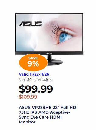 ASUS VP229HE 22" Full HD 75Hz IPS AMD Adaptive-Sync Eye Care HDMI Monitor