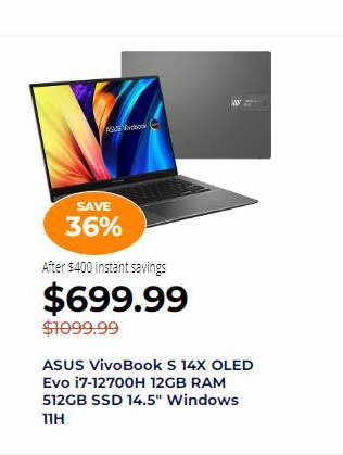 ASUS VivoBook S 14X OLED Evo i7-12700H 12GB RAM 512GB SSD 14.5" Windows 11H