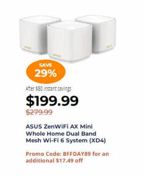 ASUS ZenWiFi AX Mini Whole Home Dual Band Mesh Wi-Fi 6 System (XD4) 199.99 via coupon BFFDAY89