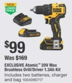 ATOMIC 20-Volt MAX Cordless Brushless Compact 1/2 in. Drill/Driver, (2) 20-Volt 1.3Ah Batteries, Charger & Bag