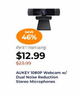 AUKEY 1080P Webcam w/ Dual Noise Reduction Stereo Microphones