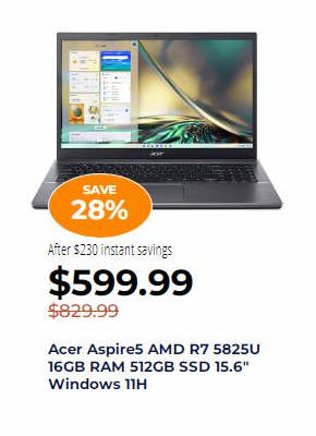 Acer Aspire5 AMD R7 5825U 16GB RAM 512GB SSD 15.6" Windows 11H