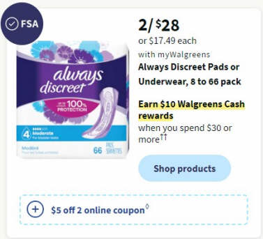 Always Discreet Pads or Underwear, 8 to 66 pack 2/ $28