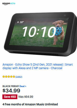 Amazon - Echo Show 5 (2nd Gen, 2021 release) | Smart display with Alexa and 2 MP camera - Charcoal