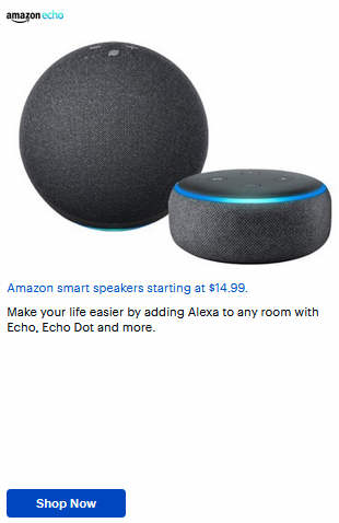 Amazon smart speakers starting at $14.99.
