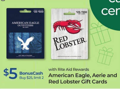 American Eagle, Aerie and Red Lobster Gift Cards: $5 BonusCash