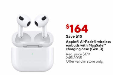 Apple AirPods wireless earbuds with MagSafe charging case (Gen. 3)