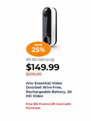 Arlo Essential Video Doorbell Wire-Free, Rechargeable Battery, 2K HD Video