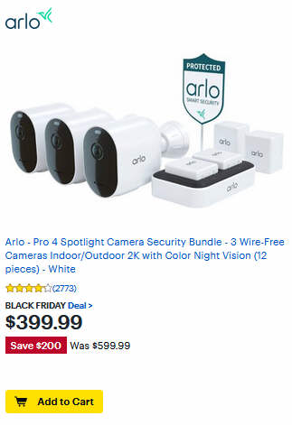Arlo - Pro 4 Spotlight Camera Security Bundle - 3 Wire-Free Cameras Indoor/Outdoor 2K with Color Night Vision (12 pieces) - White