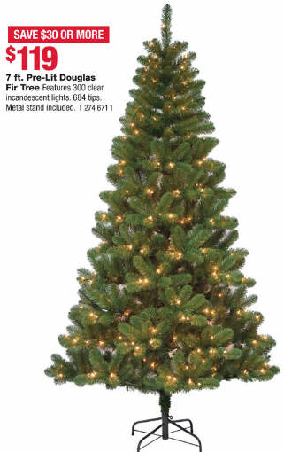 Artificial Pre-Lit Christmas Tree, Douglas Fir, 300 Clear Lights, 7-Ft.