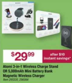 Atomi 5000mAh Mini Battery Bank Magnetic Wireless Charger with Apple Watch Charger and USB-C Charge Port