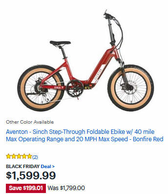 Aventon - Sinch Step-Through Foldable Ebike w/ 40 mile Max Operating Range and 20 MPH Max Speed - Bonfire Red