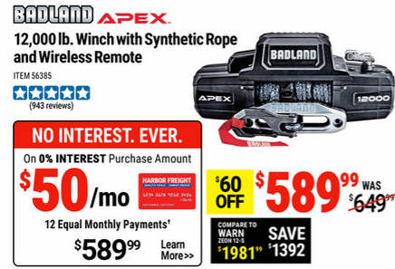 BADLAND APEX 12,000 lb. Winch with Synthetic Rope and Wireless Remote