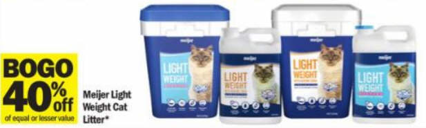 BOGO 40% off of equal or lesser value Meijer Light Weight Cat Litter
