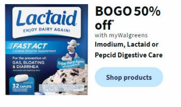 BOGO 50% off Imodium, Lactaid or Pepcid Digestive Care