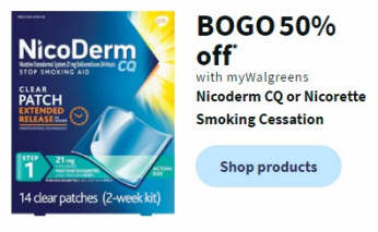 BOGO 50% off Nicoderm CQ or Nicorette Smoking Cessation