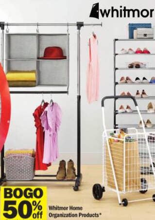 BOGO 50% off equal or lesser value on Whitmor Home Organization Products