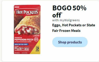BOGO 50% off with myWalgreens Eggo, Hot Pockets or State Fair Frozen Meals
