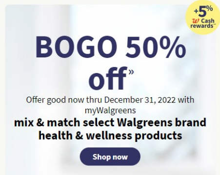 BOGO 50% off with myWalgreens mix & match select Walgreens brand health & wellness products
