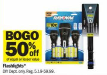 BOGO of equal or lesser value 50% off Flashlights