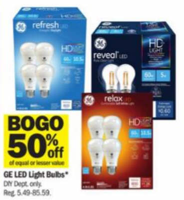 BOGO of equal or lesser value 50% off GE LED Light Bulbs