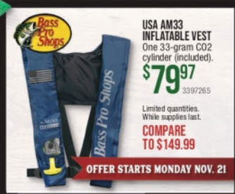 Bass Pro Shops AM33 All-Clear Auto/Manual-Inflatable Life Vest