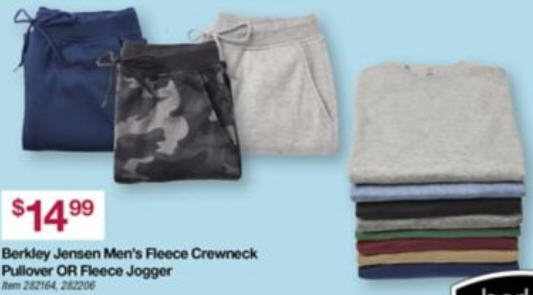 Berkley Jensen Men's Fleece Crewneck Pullover OR Fleece Jogger