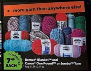 Bernat Blanket and Caron One Pound or Jumbo Yarn