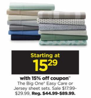 The Big One Easy Care 275 Thread Count Sheet Set or Pillowcases Starting at $15.29