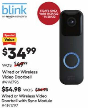 Blink Video Doorbell Wired or Wireless Wi-fi Compatibility Smart Video Doorbell - Black
