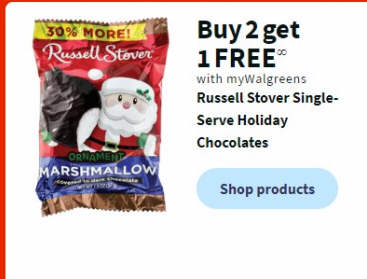 Buy 2 get 1 FREE Russell Stover Single-Serve Holiday Chocolates