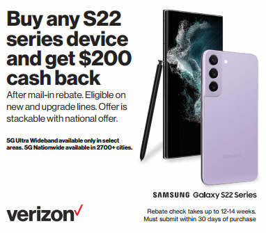 Buy Any S22 Series Device and Get $200 Cash Back via rebate on 11/25