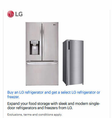 Buy an LG refrigerator and get a select LG refrigerator or freezer.