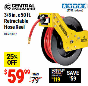 CENTRAL PNEUMATIC 3/8 in. x 50 ft. Retractable Hose Reel