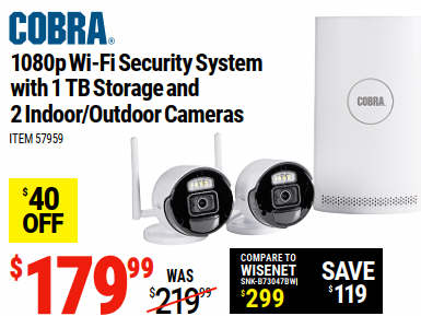 COBRA 1080p Wi-Fi Security System with 1 TB Storage and 2 Indoor/Outdoor Cameras