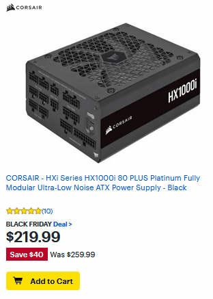 CORSAIR - HXi Series HX1000i 80 PLUS Platinum Fully Modular Ultra-Low Noise ATX Power Supply - Black