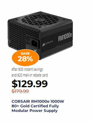 CORSAIR RM1000e 1000W 80+ Gold Certified Fully Modular Power Supply